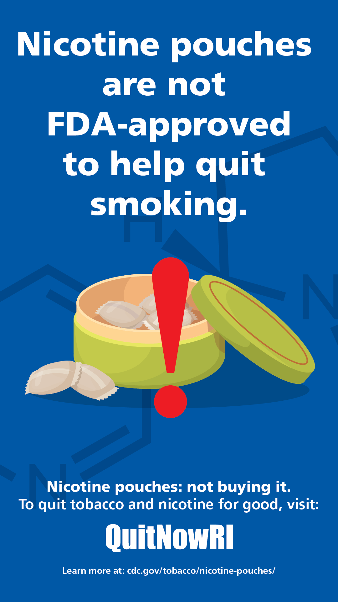 There are seven FDA-approved products available to help you quit smoking. Nicotine pouches are NOT one of them. Find out what’s proven to work at QuitNowRI.com and talk to your doctor about what might work best for you.
