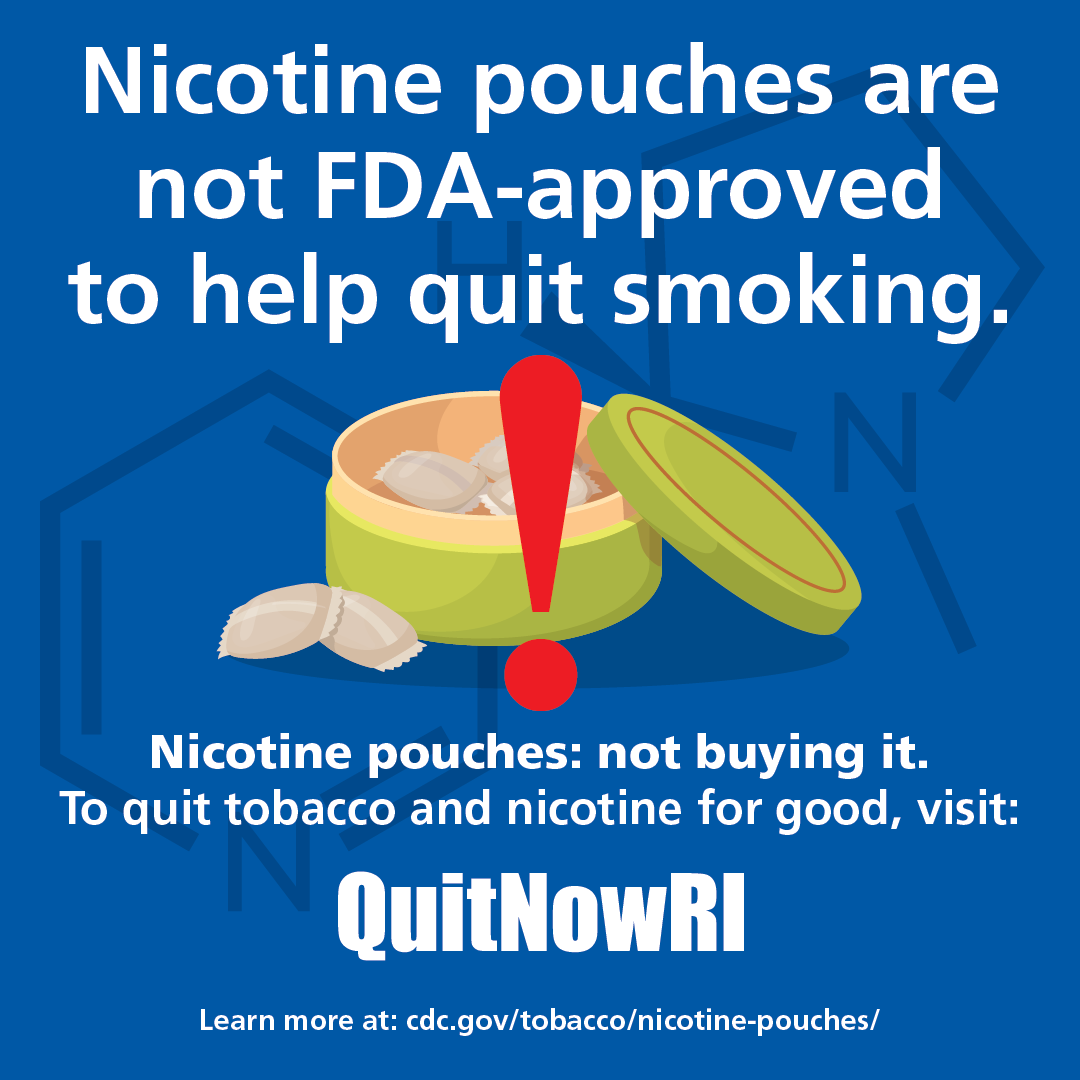 There are seven FDA-approved products available to help you quit smoking. Nicotine pouches are NOT one of them. Find out what’s proven to work at QuitNowRI.com and talk to your doctor about what might work best for you.