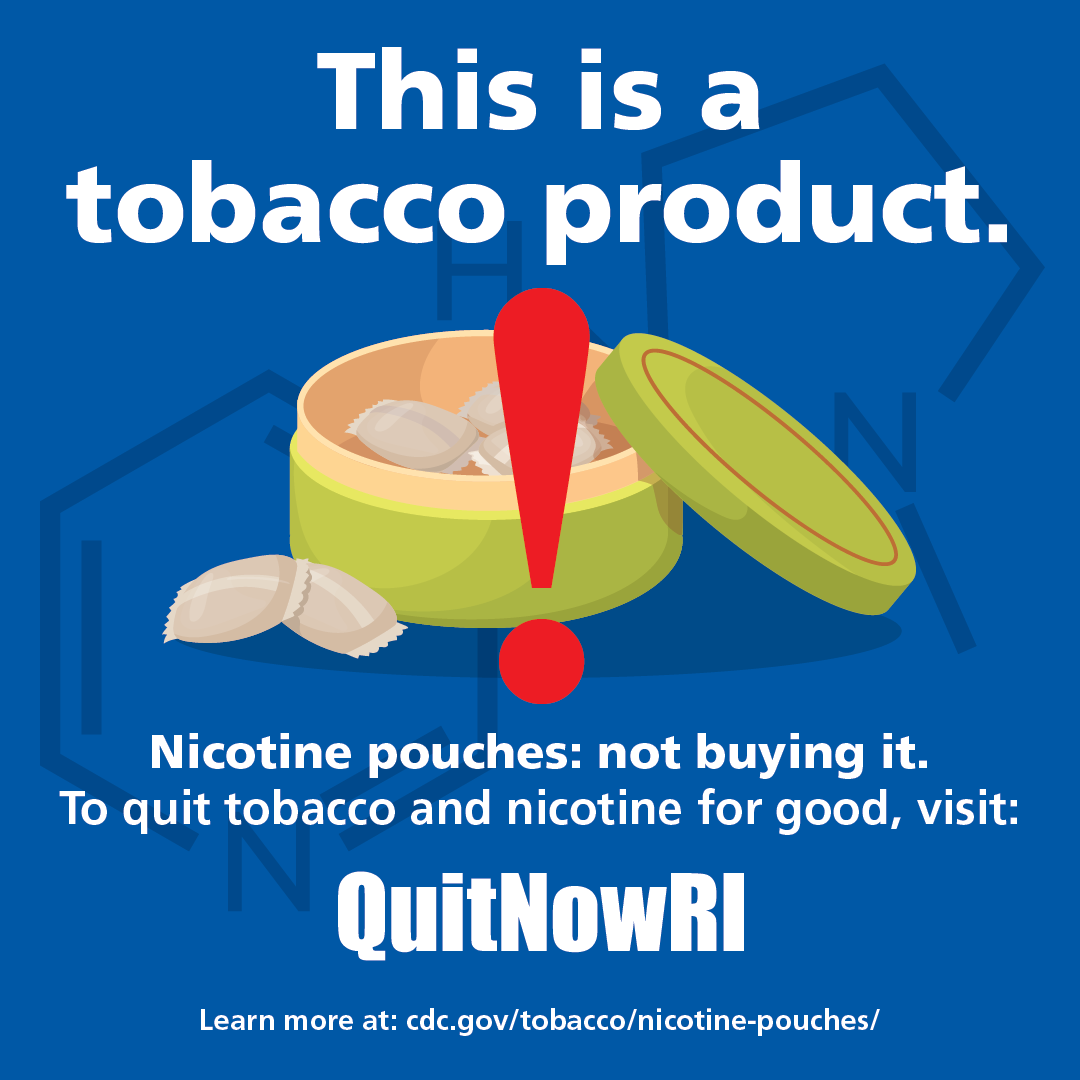 The Rhode Island Department of Health (RIDOH) has created social media messages to give people the facts about nicotine pouches. Please help us raise awareness of the health risks of these products and promote quit-smoking resources that are proven to work.