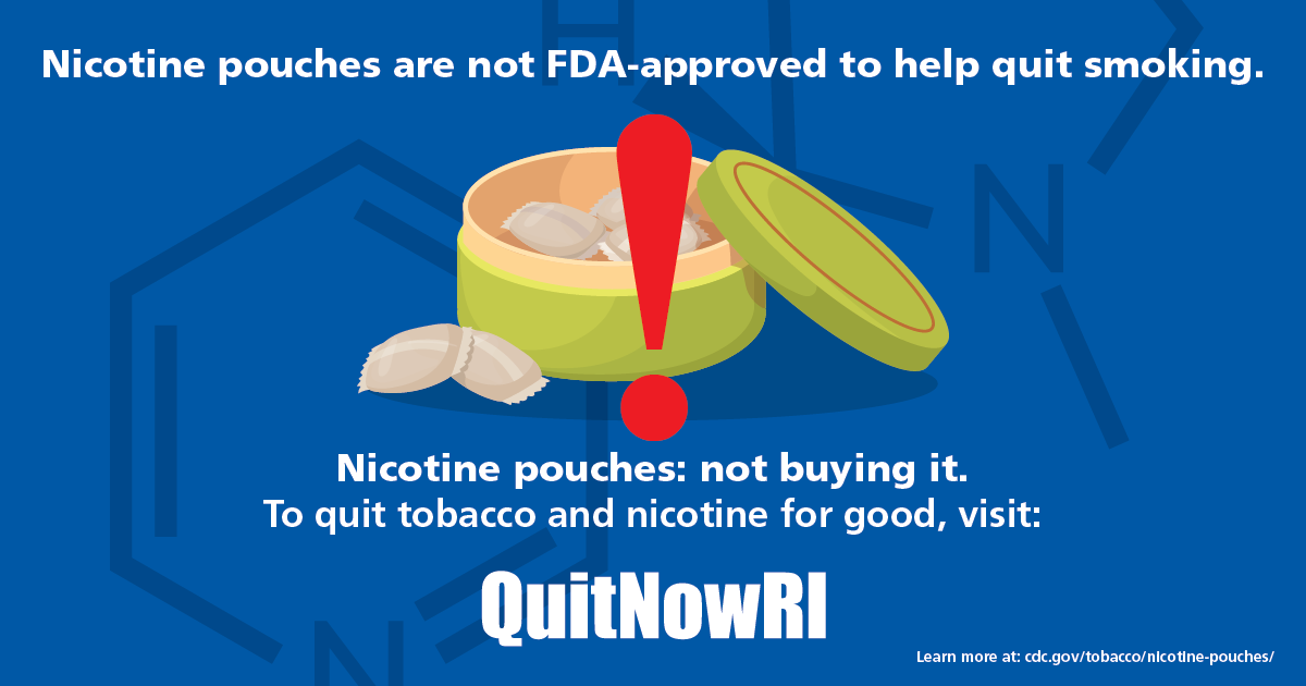 Some nicotine pouches call themselves “tobacco-free” because their nicotine was made in a lab. They are still considered tobacco products, which can be both harmful and addictive. Can’t seem to quit? Visit QuitNowRI.com for safe and effective quit strategies and talk to your doctor about what might work best for you.